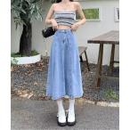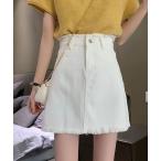 デニムスカート ハイウエスト デニム フリンジ Aライン デニム スカート