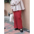 スカート PENNEYS/ペニーズ 別注 THE FOX ロゴ ワンポイント刺繍 ストレッチリブニットIラインロングスカート