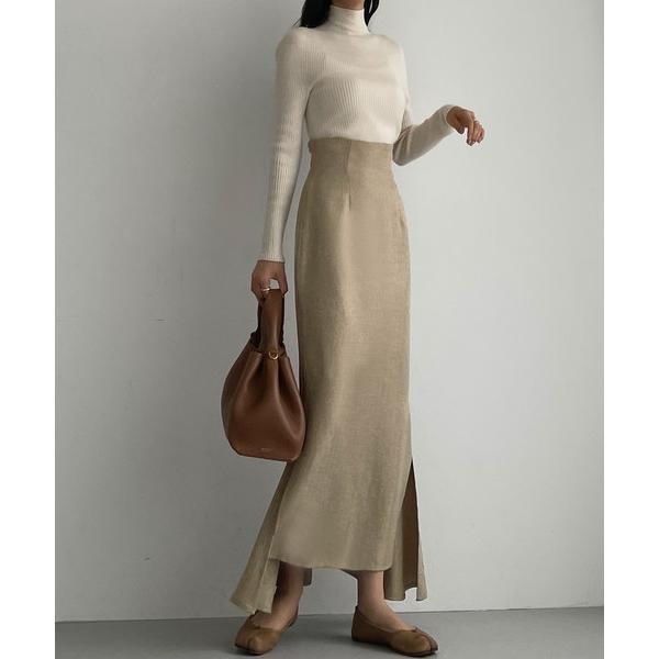 スカート ハイウエストヘリンボーンスリットマーメイドスカート