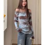 tシャツ 「i-dare」タイダイシー オフショルダー シースルー シアー カットソー レディース