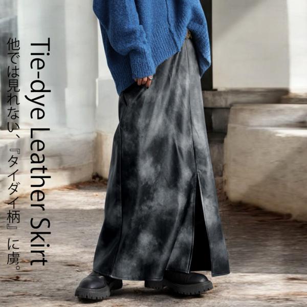 ×メール便不可!※詳細をPCサイトよりご購入前にご確認下さいませ。【検索ワード】タイダイ柄 レザースカート スカート レディース ボトムス ロング レザー 合皮 Iライン フレア ロン...