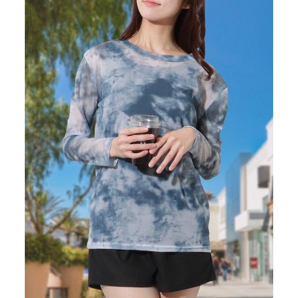 ラッシュガード 「3点セット」タイダイ シアー トップス付き ワッフル ラッシュガード レディース