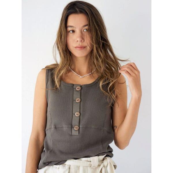 タンクトップ ノースリーブ ヘンリーネックデザインタンクトップ レディース