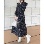 ワンピース 秋冬 きれいめ 長袖 ロング 裏起毛 レディース 総柄 孔雀 柄 ロングワンピース マキシワンピース ロングワンピ ワンピ ドレス 個性的 派手