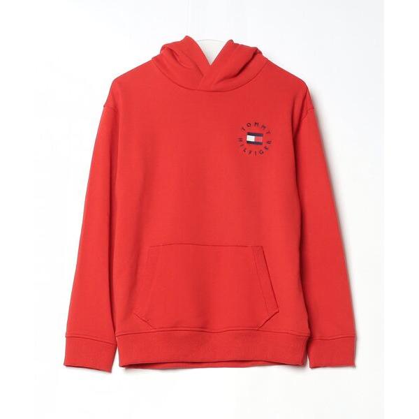 「TOMMY HILFIGER」 刺繍プルオーバーパーカー - レッド レディース