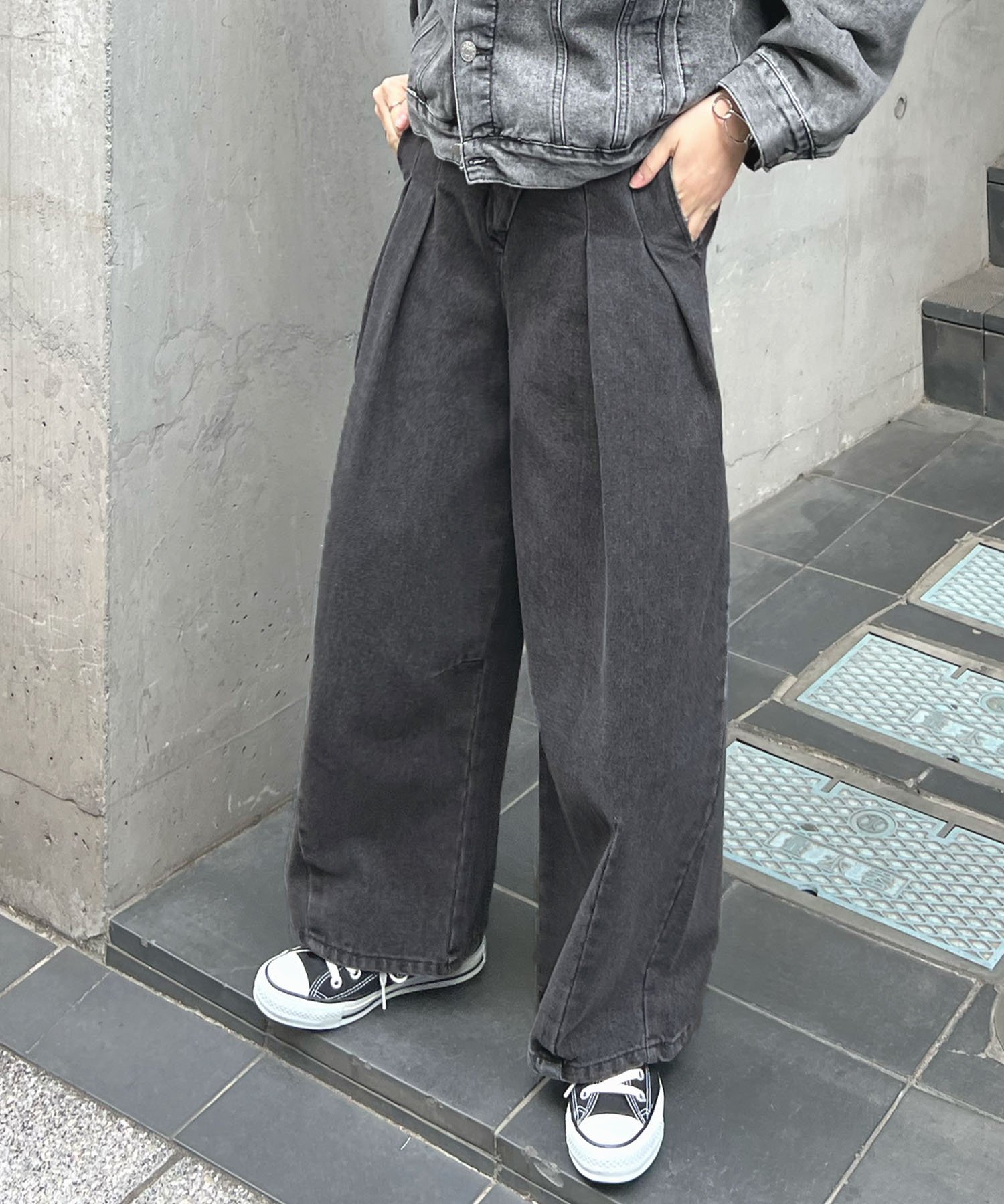 【SALE/50%OFF】studio CLIP タックデニムスカーチョ[プチ・プラスサイズあり]《CLIP denim》 スタディオクリップ パンツ ジーンズ・デニムパンツ ブラック ブルー