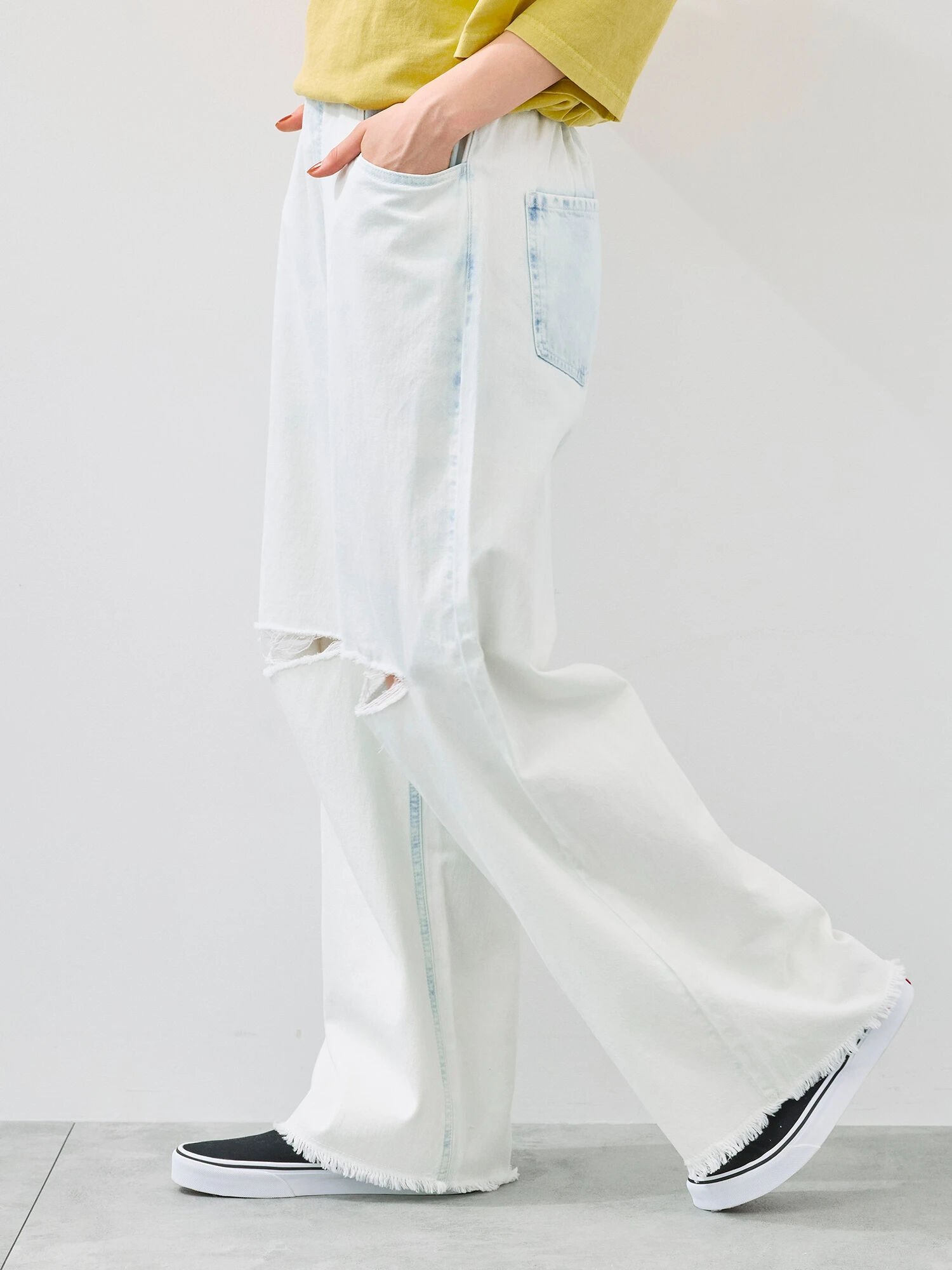 《90%OFF》ジェネティックデニム GENETIC DENIM 春夏 ワイド パンツ コットン サイズ28(XL)(W81) ホワイト レディース LPT2023