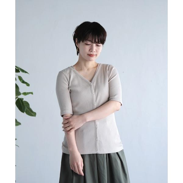 カーディガン 「 OWLEYE by domingo / アウルアイ 」 オリジナルコットンリブ Vネックショートスリーブカーディガン レディース