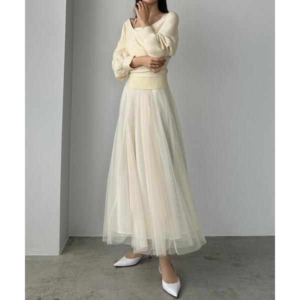 ワンピース カシュクールニット+ラッフルチュールキャミワンピースSET