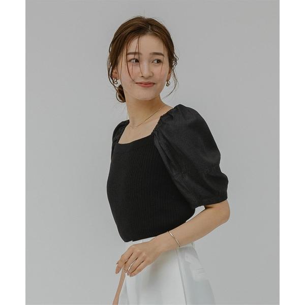 ニット セーター スクエアネック ギャザースリーブ リブ ニット トップス レディース