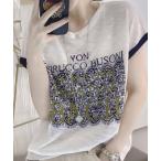 tシャツ 夏服でオシャレにレース柄フレンチスリーブサマーニット レディース