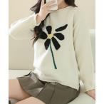 ニット セーター ラウンドネック フラワー ニット 長袖 プルオーバー レディース