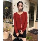 カーディガン ラウンドネック パールボタン リボン ニット カーディガン レディース