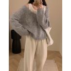 ニット セーター 「韓国ファッション」2点セット Vネックアンゴラニットラウンドキャミソール レディース