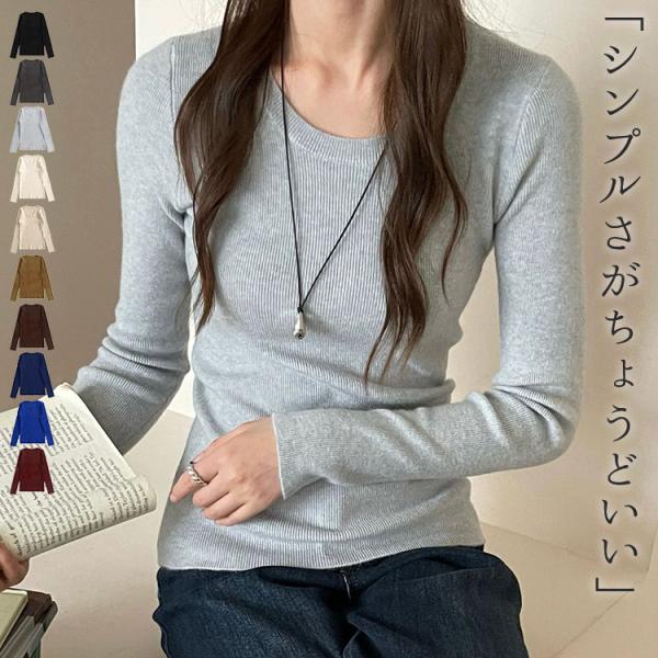 【最安挑戦!55%OFF&3318円→1738円!】Uネック ニット スリム ニットトップス コージーニット レディース カットソー インナー プルオーバー 冬 レディースニット オフィス 長袖 通勤 シンプル ソフト 洗えるニット 柔らかい 春 秋 インナー