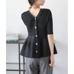 ニット セーター 「さりげなく、だから差がつく。」上品アクセントが効く。袖ゴールドボタン付ききれいめ春の七分袖ニット レディース