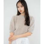 ニット セーター ファブリックコンビ ハーフスリーブプルオーバー レディース