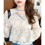 ニット レディース トップス 長袖 薄手 セーター 透かし編み クルーネック ダイヤ柄 レイヤード 重ね着 体型カバー 返品交換不可 「メール便可」「10」