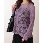 ニット セーター 透かし柄編みモヘアライクニットプルオーバー レディース