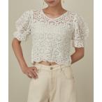ニット セーター 「SETUP7」クロップ丈パフスリーブ透かし柄ニット SCCH601 レディース