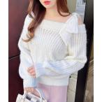 ニット セーター シアー肩リボンオフショル透かし柄ニット レディース
