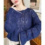 カーディガン 透かし柄 モヘアタッチポロニット レディース