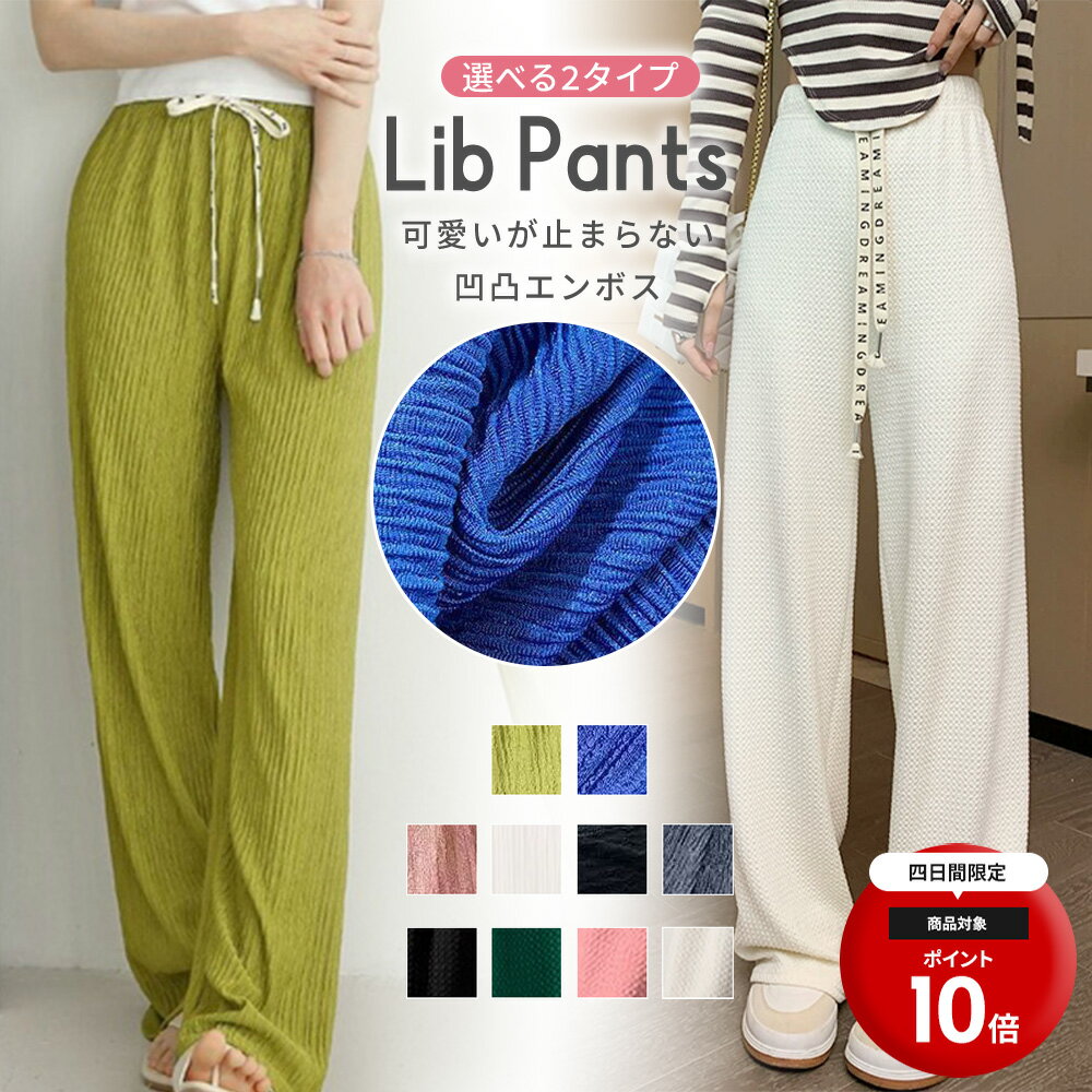 パンツ ウエスト イージー リブ ワイド パンツ レディース