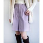 パンツ ダブルタック ハイウエスト フレア ショート パンツ レディース