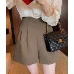 パンツ ワンウェイ プリーツ ハイウエスト ショート パンツ レディース