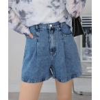 パンツ Wボタン ハイウエスト デニムショートパンツ レディース