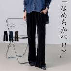 イージーパンツ ワイド ベロア レディース ストレート ウエストゴム ゆったり ストレッチ 春 秋冬 黒