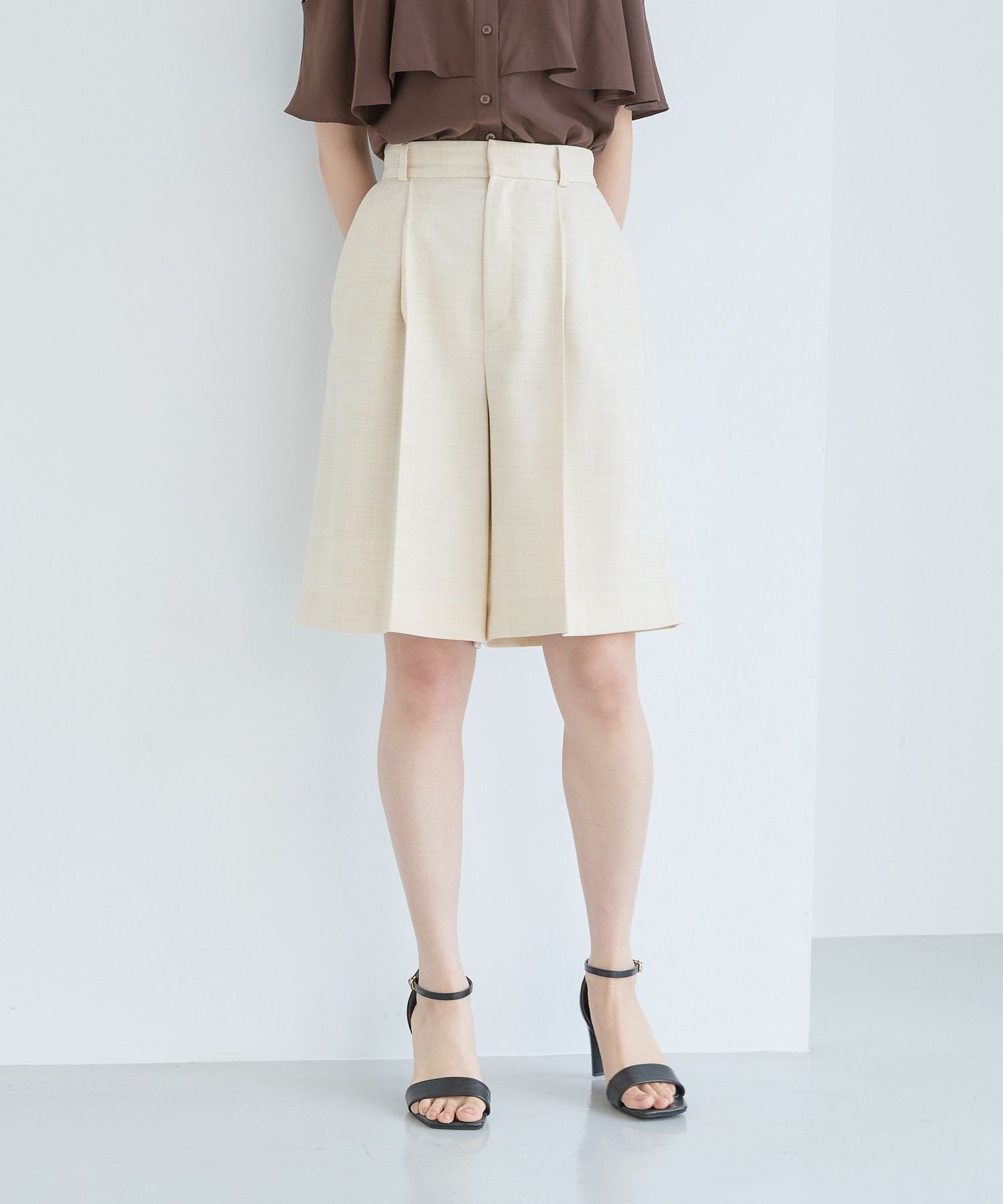 【quaranciel_202503_】SHIPS レディース パンツ シップス quarancielSHIPS(シップス)quaranciel:<洗濯機可能>コットン リネン サファリ ハーフ パンツ2024SSseasonthema「astudyinchic」-Design-大人の女性...