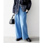 パンツ bon_meur:「洗濯機可能」ロゴ エンブロイダリー パッチワーク ワイド パンツ レディース