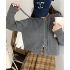 パーカー ジップアップ短丈ニットフーディー レディース