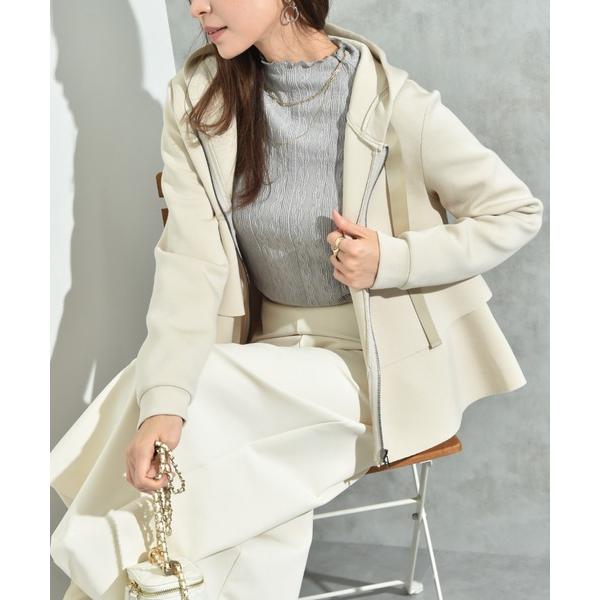 パーカー ダンボールニットフリルZIPパーカー レディース