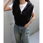 ニット セーター フード付コンパクトゆるニットジップパーカー レディース