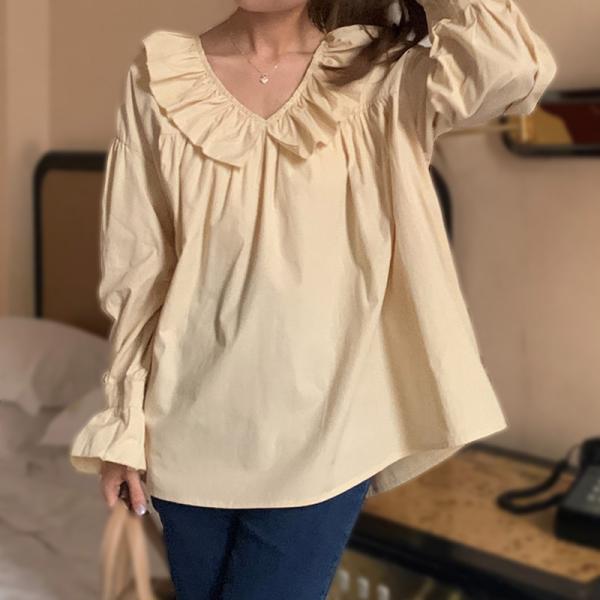 メール便送料無料 ブラウス レディース 長袖 Vネック スモック おしゃれ きれいめ かわいい 春秋 トップス シャツ フリル カジュアル フェミニン■セット内容・1点・トップス大人フェ...
