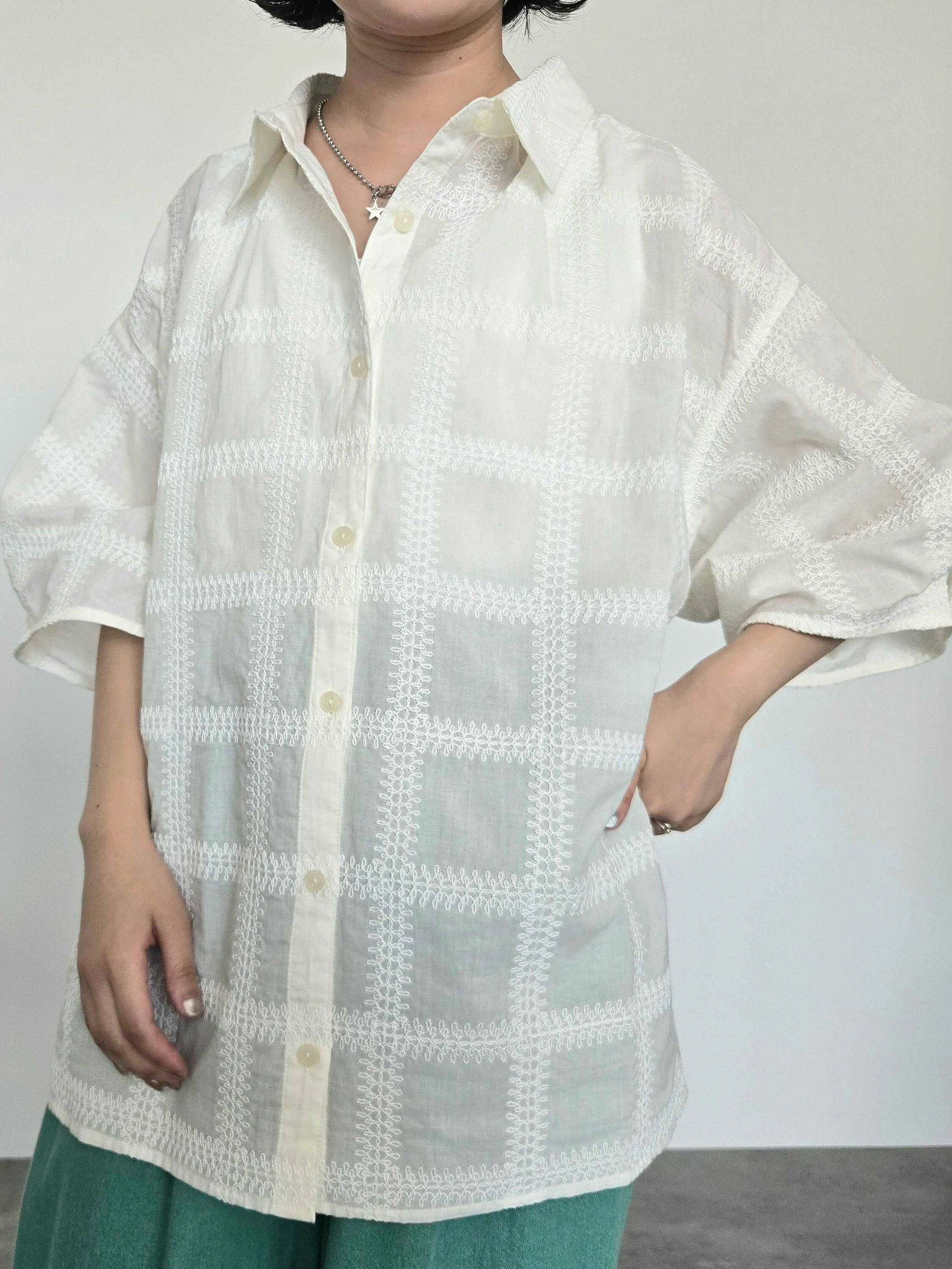 【SALE/50%OFF】SM2 スクエア刺繍袖タックシャツ サマンサモスモス トップス シャツ・ブラウス ブラック ブルー ホワイト ブラウン
