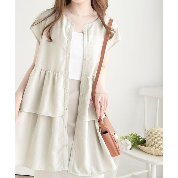 ブラウス シャツ エアリータッチのふんわりトップス。前後2wayティアードチュニックブラウス レディース