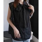 ブラウス シャツ ボウタイノースリーブブラウス レディース