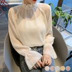ブラウス レディース シアートップス おしゃれ かわいい 春夏 秋 シャツ シースルー 白 黒 透け ハイネック