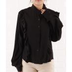 ブラウス シャツ ショルダーフリルスタンドカラーブラウス レディース