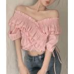 ブラウス シャツ クロップド丈フリルブラウス レディース