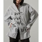 ブラウス シャツ 「Alfred Alex」レタリングプリントオーバーサイズストライプシャツ レディース メンズ