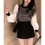 【SALE/50%OFF】ニット ベスト ブラウス レディース 長袖 ボリューム袖 パフ袖 パワショル トップス 春 夏 秋 プルオーバー オーガンジー シフォン シースルー シアー 透け感 レイヤード 異素材 カジュアル おしゃれ トレンド BLUEEAST