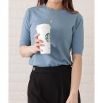 ブラウス シャツ 半袖リブニットボトルネックプルオーバー レディース