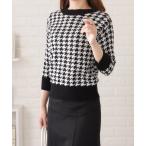 ブラウス シャツ 千鳥柄7分袖ニットプルオーバー レディース