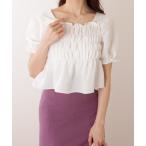ブラウス シャツ メリハリギャザースクエアネックプルオーバー レディース