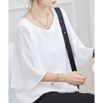 ブラウス シャツ ボートネック ドルマン ギャザー 5分袖プルオーバー レディース