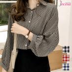 シャツ チェック ドロップショルダー ブラウス 七分袖 八分袖 韓国ファッション トップス M L XL JOCOSA 7084